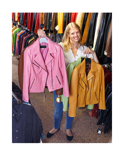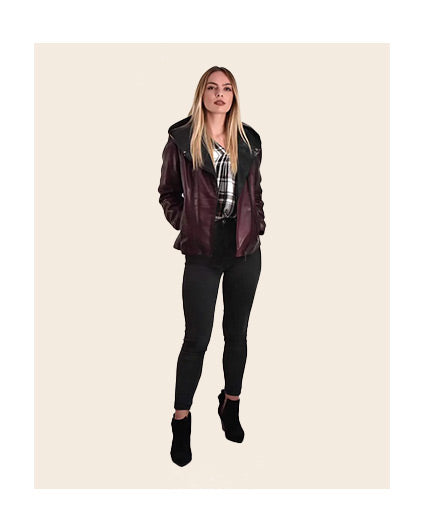 Γυναικείο δερμάτινο μπουφάν με ενσωματωμένη κουκούλα